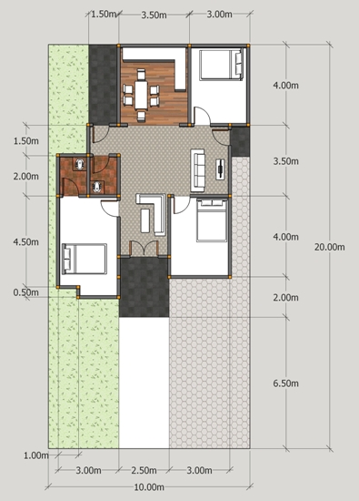 Taman mungil dengan ukuran lahan 3 m x 2 m.
