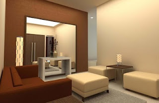 Ruang tamu minimalis dengan furniture beragam sofa meskipun ruang tamu ini ber cat krem dengan warna sofa yang sepadan di tambah.