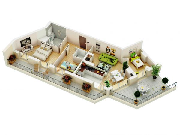 Berikut ini denah rumah 3 kamar.