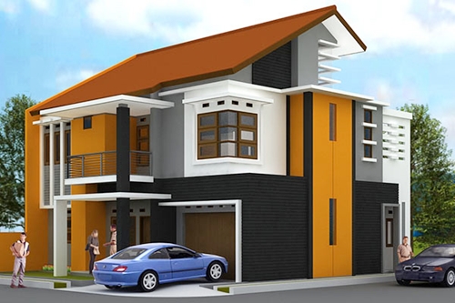 Kombinasi cat rumah warna orange.
